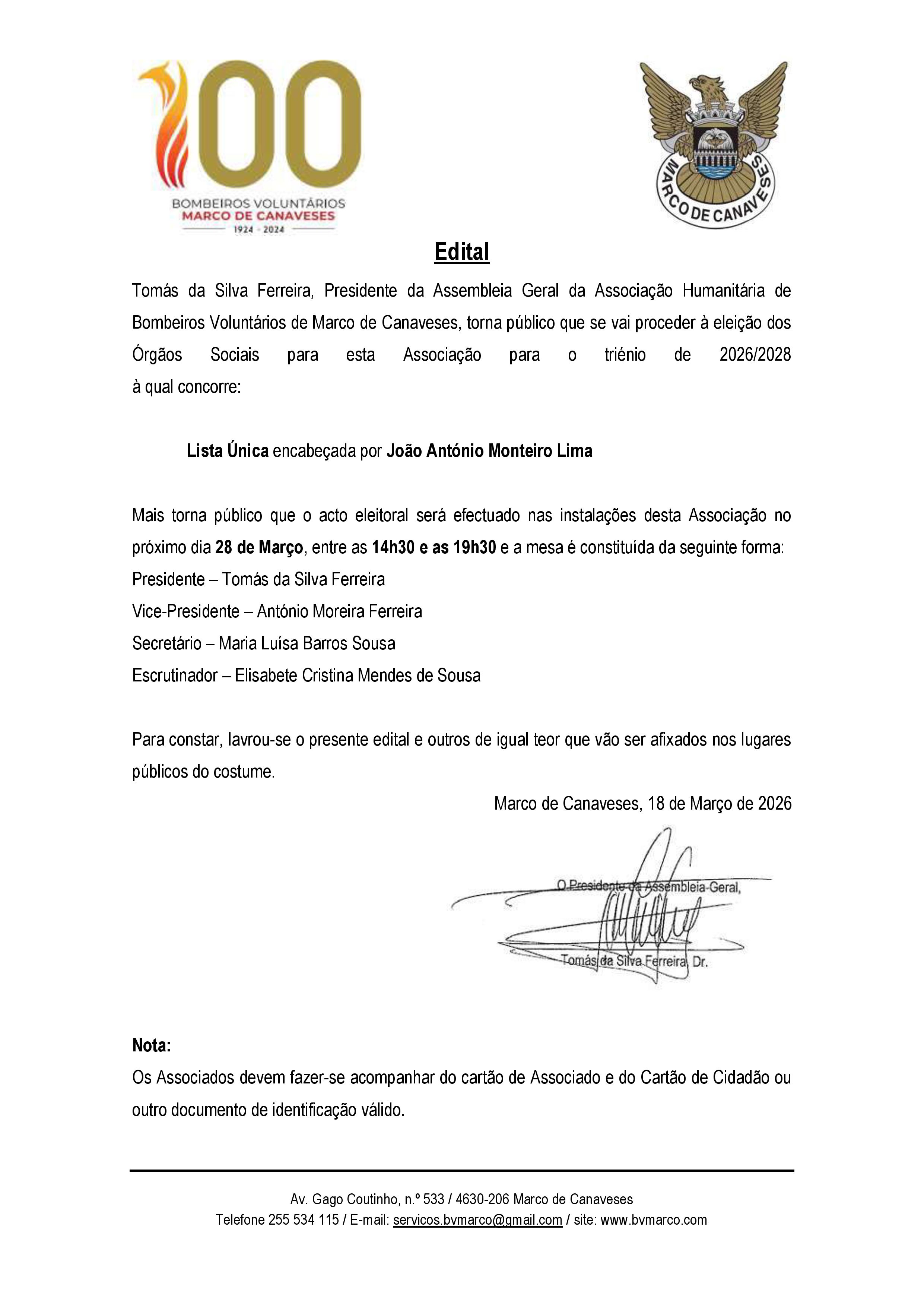 Convocatória Ato Eleitoral 2026